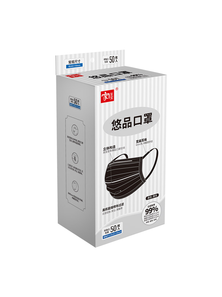 【家至寶】悠品口罩 黑色 50枚非獨(dú)立裝