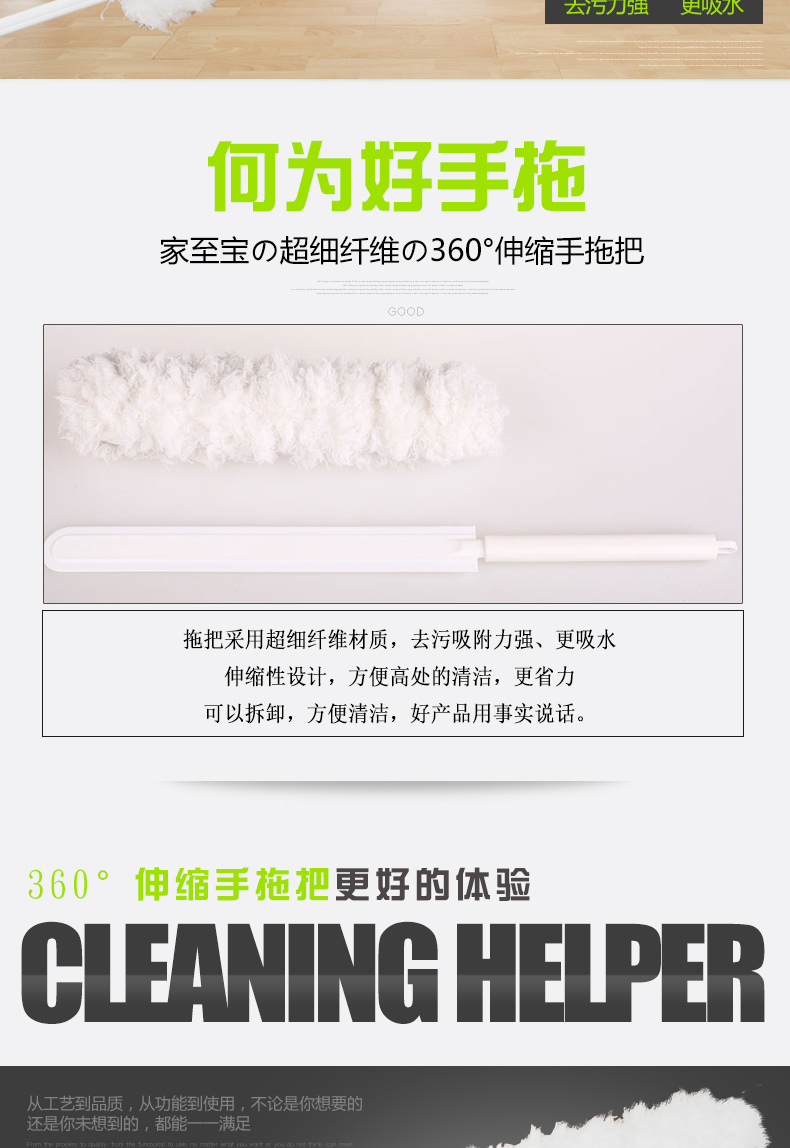 【家至寶】360°伸縮手拖把